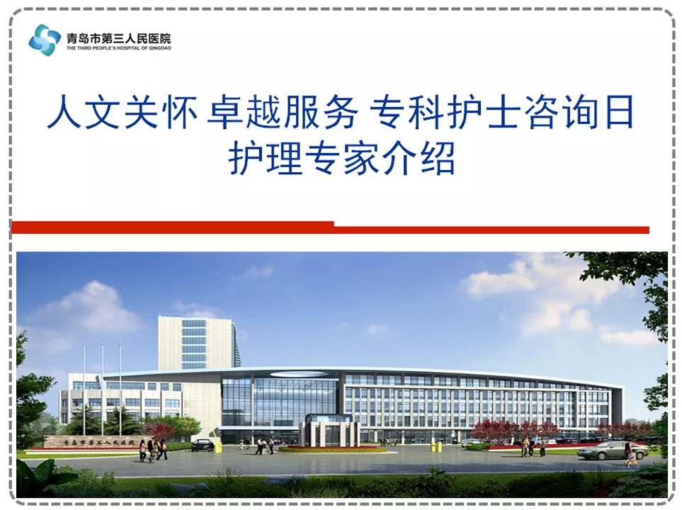 为庆祝5.12国际护士节,弘扬南丁格尔精神,深化优质护理服务百姓健康,构建和谐医患关系,青岛市第三人民医院护理部即将开展专科护理专家咨询服务:
