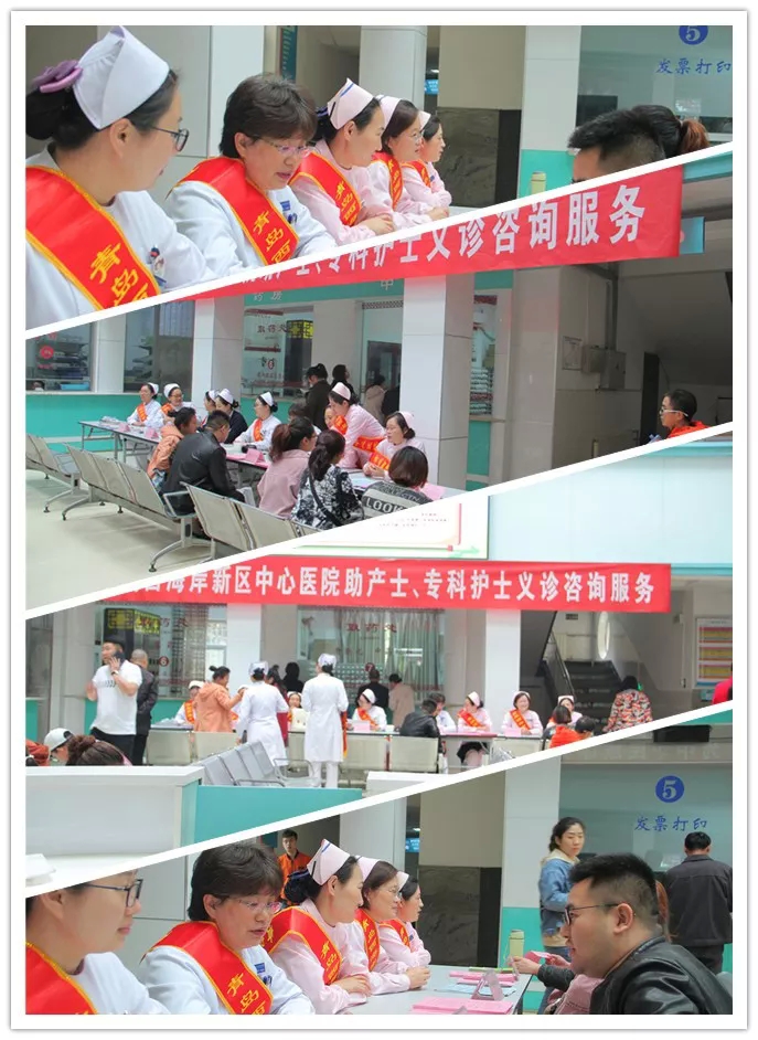 5月5日上午,为庆祝“5.12”国际护士节,进一步深化优质护理服务内涵,提升护理工作品质,树立护理人员良好职业形象,满足百姓对护理专业知识的需求,同时,5月5日也是“国际助产士日”,青岛西海岸新区中心医院产科一组主任崔风华带领护士长薛伟、产科二组护士长杨丽丽和青岛市金牌助产士张礼珍与护理部精心组织的糖尿病、PICC、伤口造口专科护士,在医院一楼门诊大厅开展“助产士、专科护士义诊咨询服务”活动,这也是庆祝“5.12”护士节系列活动之九。