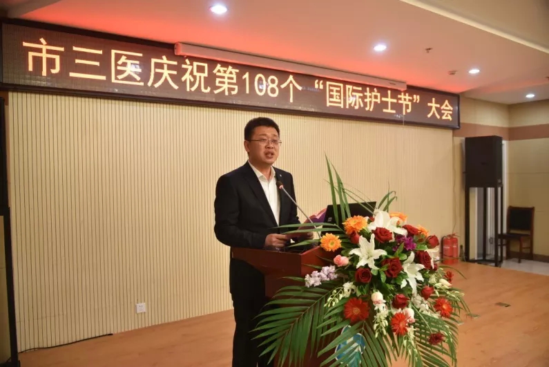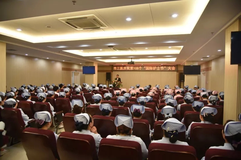徐徐春风带来了第108个国际护士节,2019年5月10日,我们欢聚一堂,召开青岛市第三人民医院庆祝“5.12”国际护士节大会。院长邢晓博向全体护理工作者致以节日的问候、向多年来为医院建设作出贡献的护理同仁致以崇高的敬意,并向长久以来支持理解护理工作的护士家属们表示衷心的感谢!同时发表了热情洋溢的讲话,对我院护理工作给予了高度肯定,希望广大护理人员在以后的工作中继续发扬南丁格尔精神,以病人为本,以服务为荣,以奉献为乐,刻苦钻研护理专业知识,努力提高服务水平,共同描绘三医宏伟蓝图,续写三医新篇章。大会由业务副院长马振亮主持并致开幕词。各临床护士长、全院200余名护士代表参加大会。