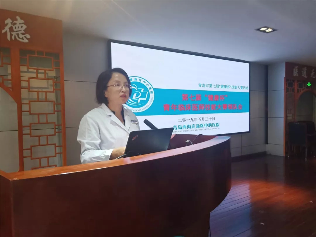 青岛西海岸新区中心医院李国华副院长向前来参会的各位同仁表示热烈欢迎,并表示将严格按照文件要求,以严谨的态度做好各项服务,保证比赛公平、公正,并预祝各位选手在大赛中取得优异成绩。