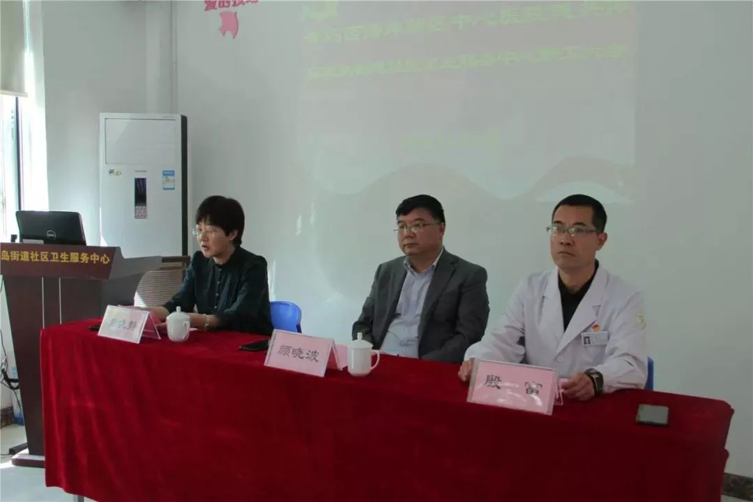 会后,青岛西海岸新区中心医院院长颜晓波与薛家岛街道社区卫生服务中心主任殷富共同为“青岛西海岸新区中心医院健康共同体薛家岛街道社区卫生服务中心”揭牌。