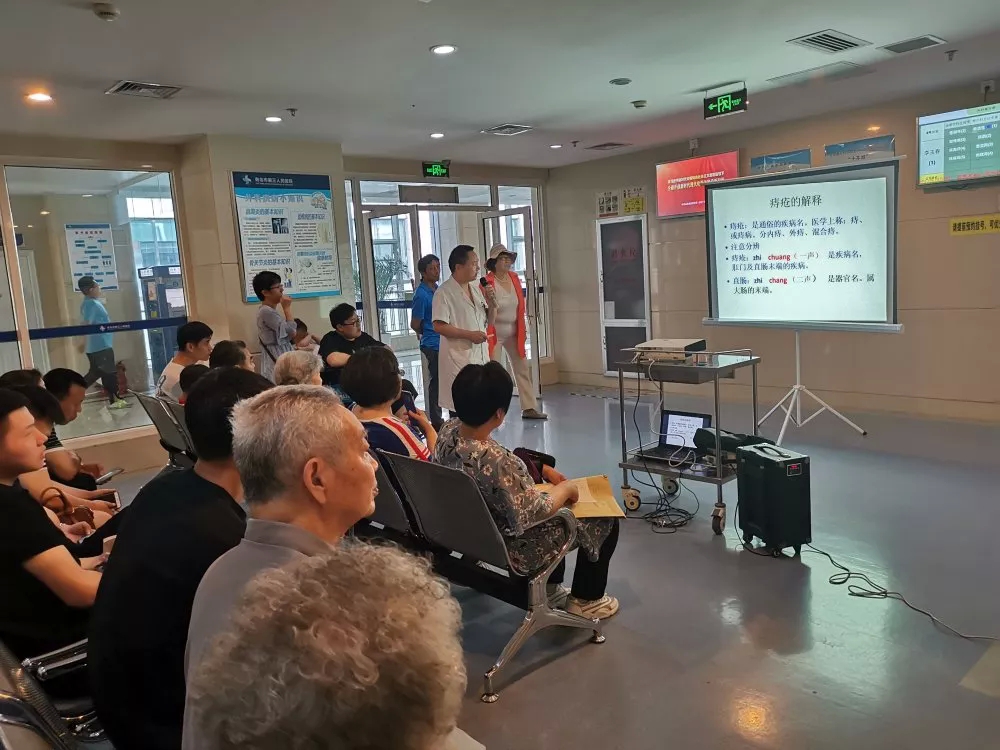 为加强健康教育,进一步向广大市民宣传健康知识,市第三人民医院肛肠科张增强主任医师,于2019年6月24日早晨7:40分在外科门诊候诊区进行《痔疮的常见症状及防治》科普讲座。张主任运用图文并茂的PPT课件为外科候诊病人及家属生动地讲解了有关痔疮的知识,讲解的内容主要有:什么是痔疮、痔疮的分类、痔疮的常见症状有哪些、痔疮与直肠癌的鉴别、生活中如何预防痔疮、得了痔疮如何治疗等相关知识。使候诊病人及家属获益匪浅。