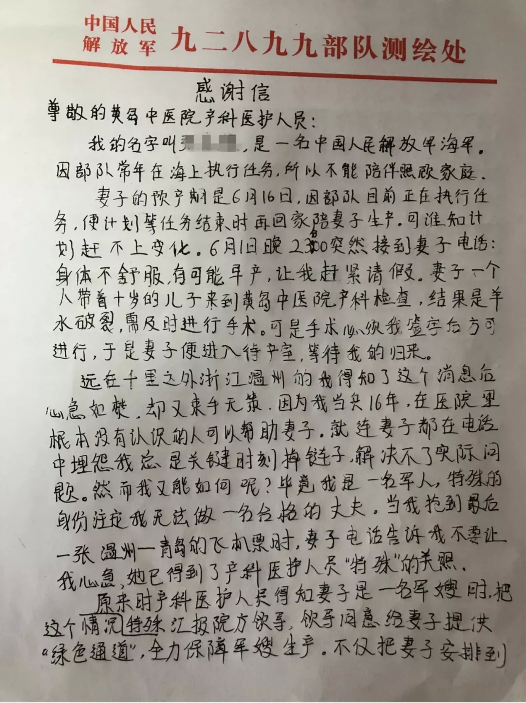 时间就是生命!产科值班医护人员得知待产妇是军嫂,丈夫因执行任务不能陪在身边时,及时向李淑丽主任进行汇报,李主任立即做出指示:“迅速启动应急预案,开通急救绿色通道!解放军战士在海防执行任务守卫祖国海疆,我们要尽力守护军嫂确保顺利生产!”