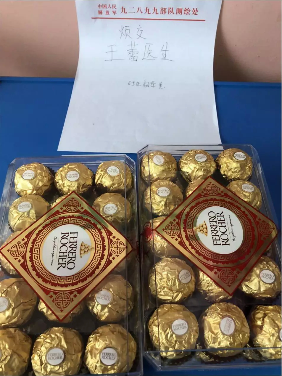 随感谢信一起送到产房的还有两盒巧克力。原来,海军战士还有一个10岁大的儿子。当晚,毫无准备的军嫂只能带着儿子到医院一同检查待产,助产士王蕾为了让军嫂安心休息待产,为他们准备了单间待产室,整夜陪伴着军嫂,安抚小朋友入睡,细心的给小家伙盖被子,解除了军嫂的后顾之忧。小朋友回家后找出自己最珍爱的两盒巧克力让爸爸转交给产房的白衣天使们,反复叮嘱爸爸送感谢信的时候,一定要把其中的一盒巧克力单独送给王蕾阿姨。