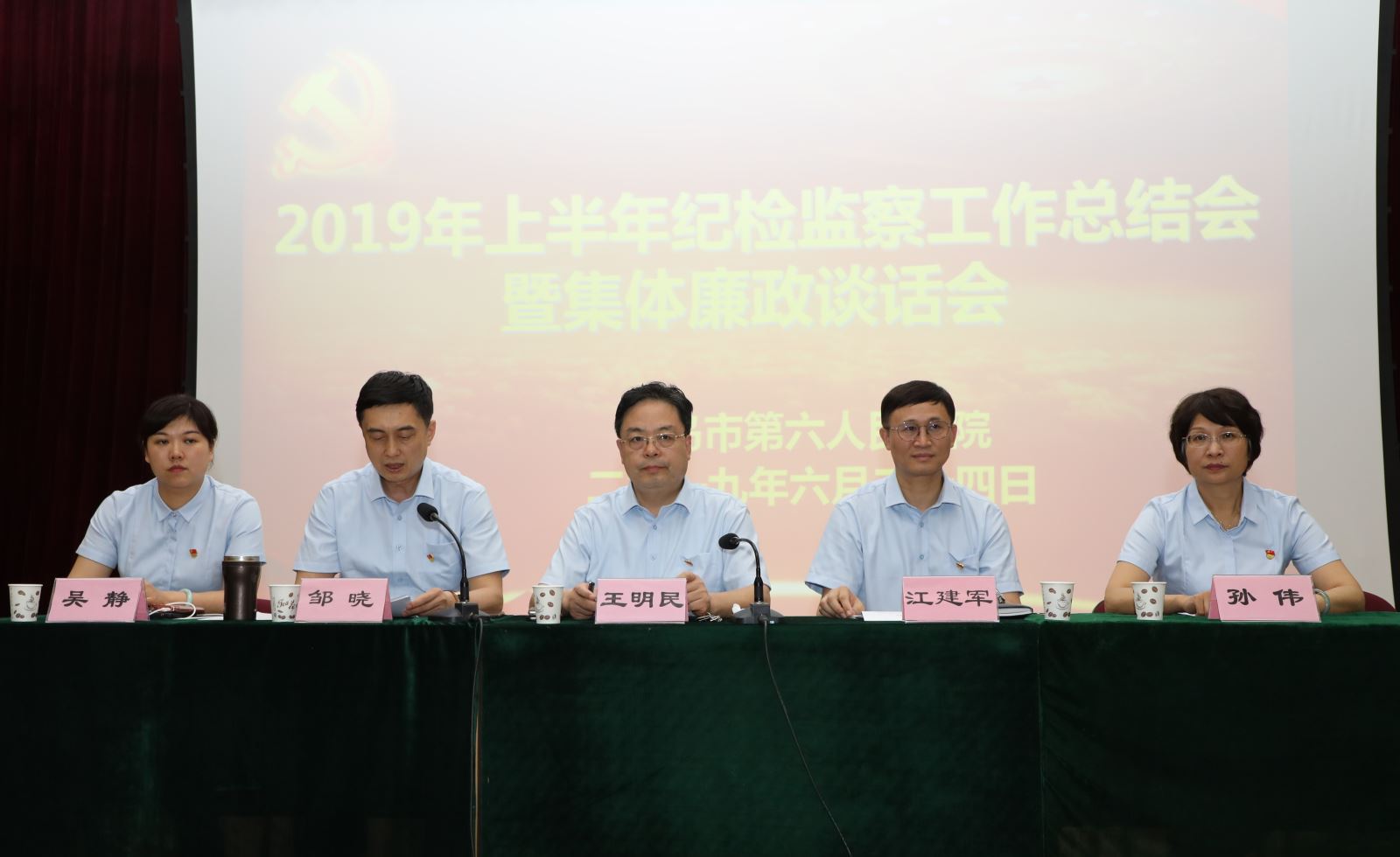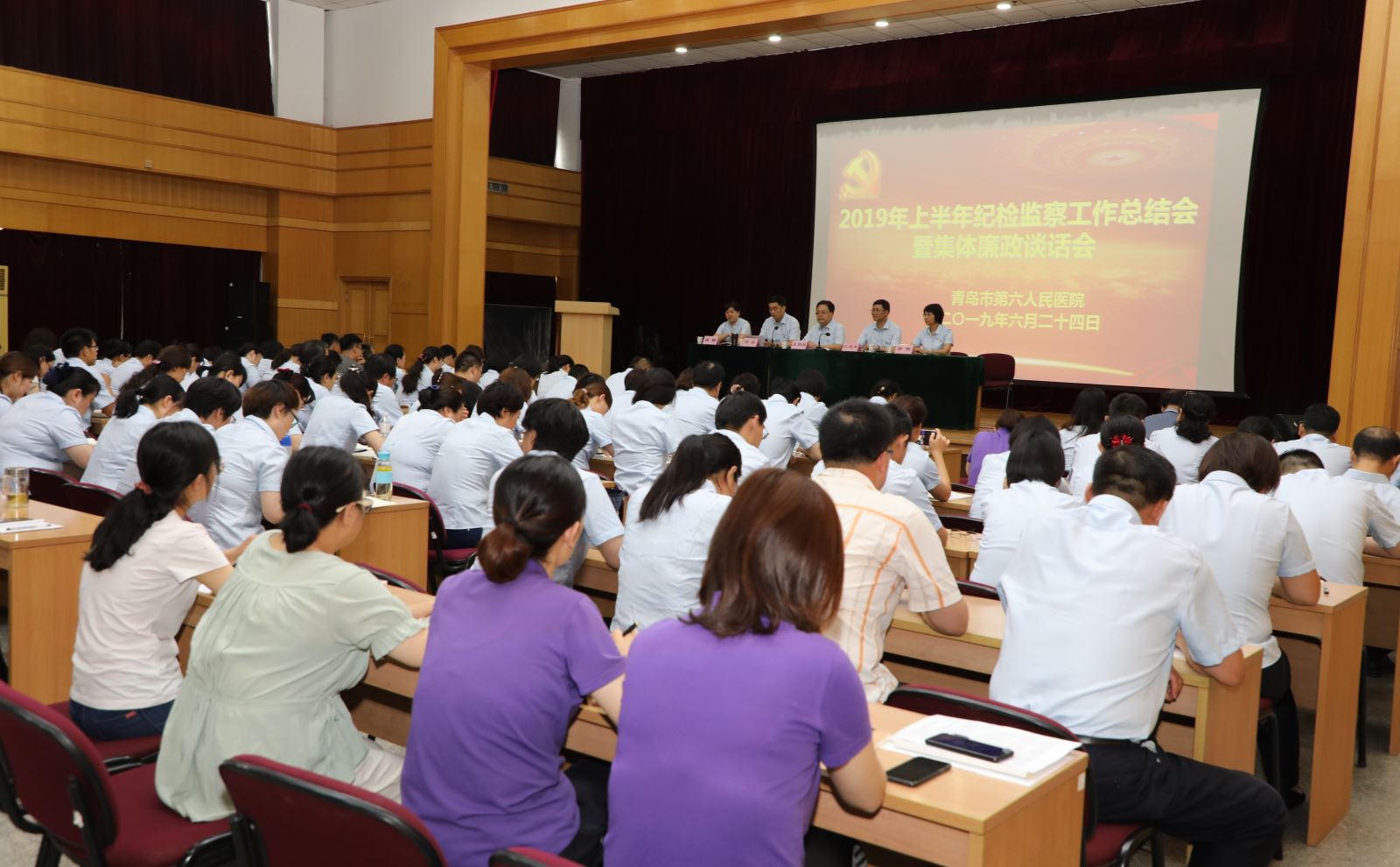 6月24日下午,医院召开2019年度上半年纪检监察工作总结暨集体廉政谈话会,会议由党委副书记、纪委书记邹晓主持,会议坚持以习近平新时代中国特色社会主义思想为指导,深入学习贯彻省委刘家义书记“担当作为、狠抓落实”讲话精神,聚焦精兵强将攻山头、典型引路稳阵地,扎实开展“不忘初心,牢记使命”主题教育活动,推进医院全面从严治党向纵深发展,医院党委领导班子成员及全体党员、中层干部、护士长、职工代表参加了会议。