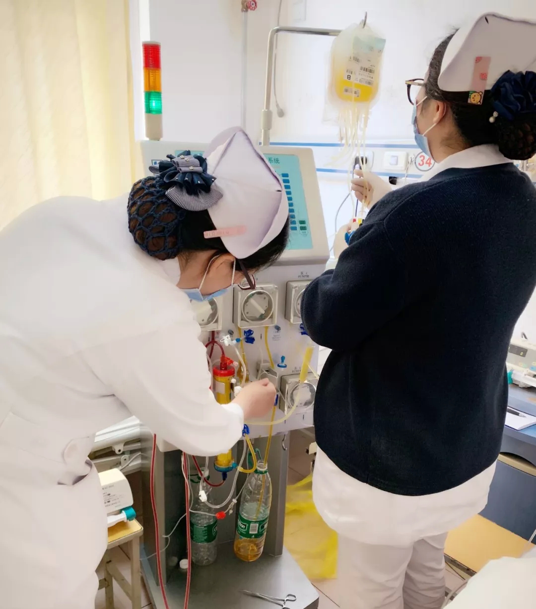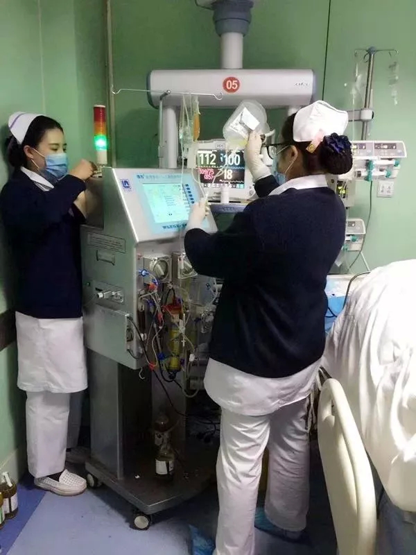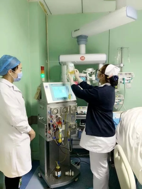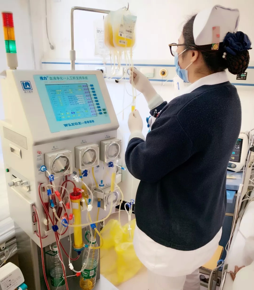 65岁的窦女士,13年前被诊断为“乙肝肝硬化”,今年1月出现右胁疼痛,伴乏力,头晕,黄疸,病情逐渐加重,皮肤、巩膜黄染加深,遂来到青岛西海岸新区中医医院肝胆病科就诊。经检查,肝功各项指标严重异常,胆红素超标,且戊肝抗体阳性,诊断为肝衰竭,急性戊型病毒性肝炎,肝炎后肝硬化。经过10天的内科对症治疗,窦女士黄疸仍继续加深。因老年、孕妇、儿童重症戊肝患者死亡率极高,且窦女士本身有乙肝肝硬化的基础病,预后很差,与窦女士及家属沟通后,医生决定为患者进行人工肝治疗。