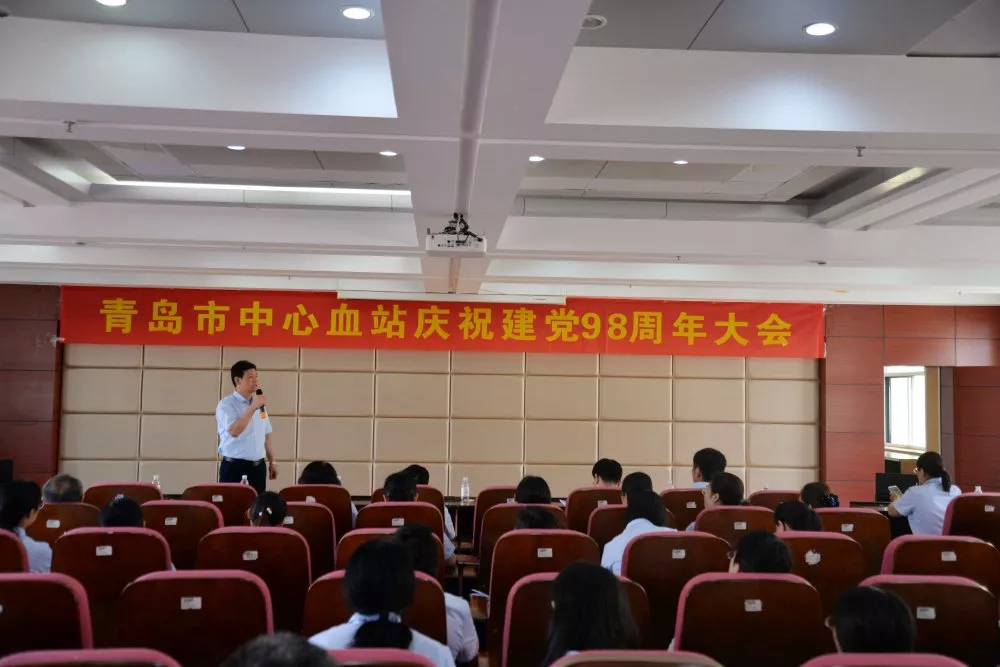 庆祝党的生日,缅怀党的历史,展望辉煌前程,鼓舞党员士气。2019年6月28日上午,青岛市中心血站召开庆祝建党98周年大会,站领导班子成员、全体党员及入党积极分子共100余人参加活动。大会由站党委委员、站长逄淑涛主持。