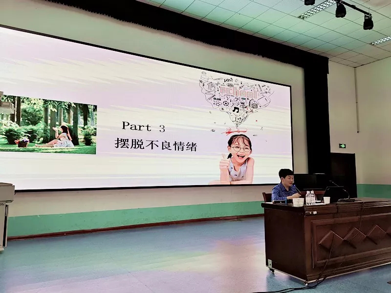 护理部副主任刘萍以“雨点变奏曲”游戏互动的形式开场,引起了学生们极大的兴趣。讲座从认识情绪、情绪对人的影响、如何摆脱不良情绪、共享心情的感悟四方面对学生们进行讲解,通过设置场景让同学们认识情绪及外部表现形式、类型,从生理心理的角度解析情绪对人的影响,对照大脑结构图生动形象地让同学们了解情绪对学习的干扰,并用实际案例阐述了情绪对身体健康的影响及情绪ABC理论。
