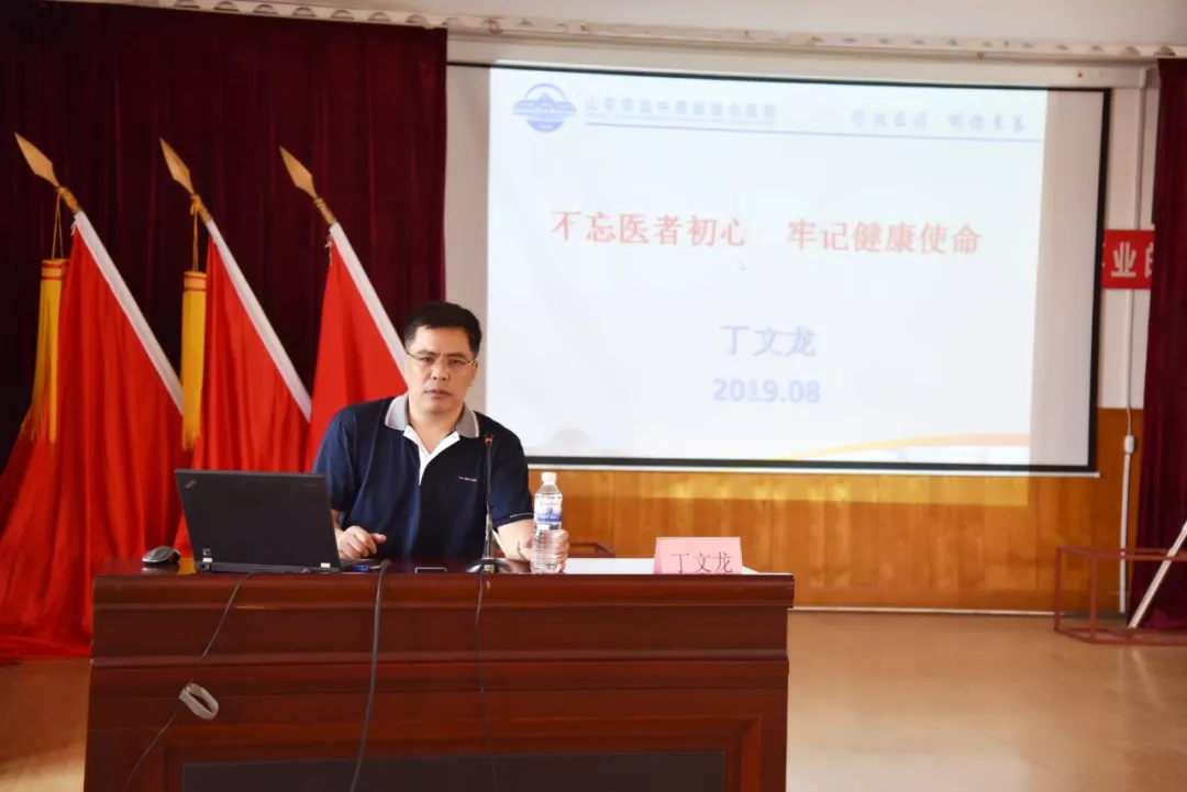 集中岗前培训期间,首先由丁文龙院长为大家授课,丁院长从医院的发展史,医院面临的机遇与挑战、医院发展目标与任务、新职工应具备的能力与素质做了详细讲解,他希望新职工们通过培训,能够在走上工作岗位前对医院有一个全面而具体的认识,能够对自己的职业生涯有一个清晰的规划,在工作当中要不断学习,增强团队意识,强化责任意识,提升大局意识,不断地在医学道路上探索,要有吃苦的精神和思想准备,为医院的发展做出应有的贡献。