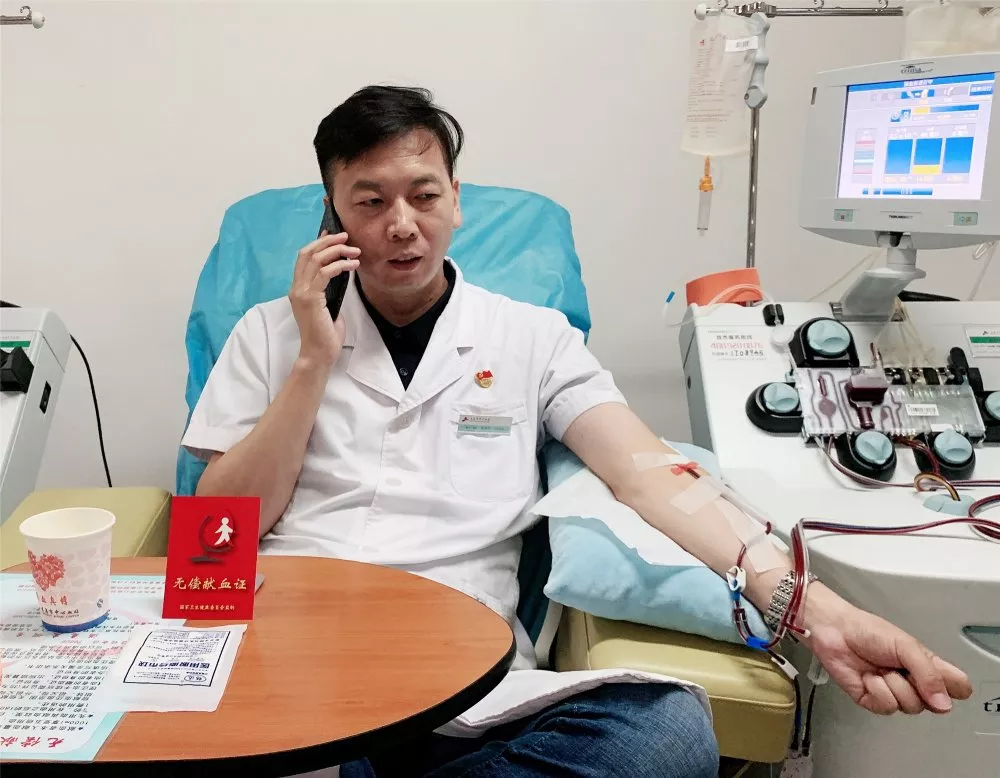平度市人民医院大夫柳升东,得知临床用血比较紧张,百忙之中前来献血,以实际行动践行医者大爱!