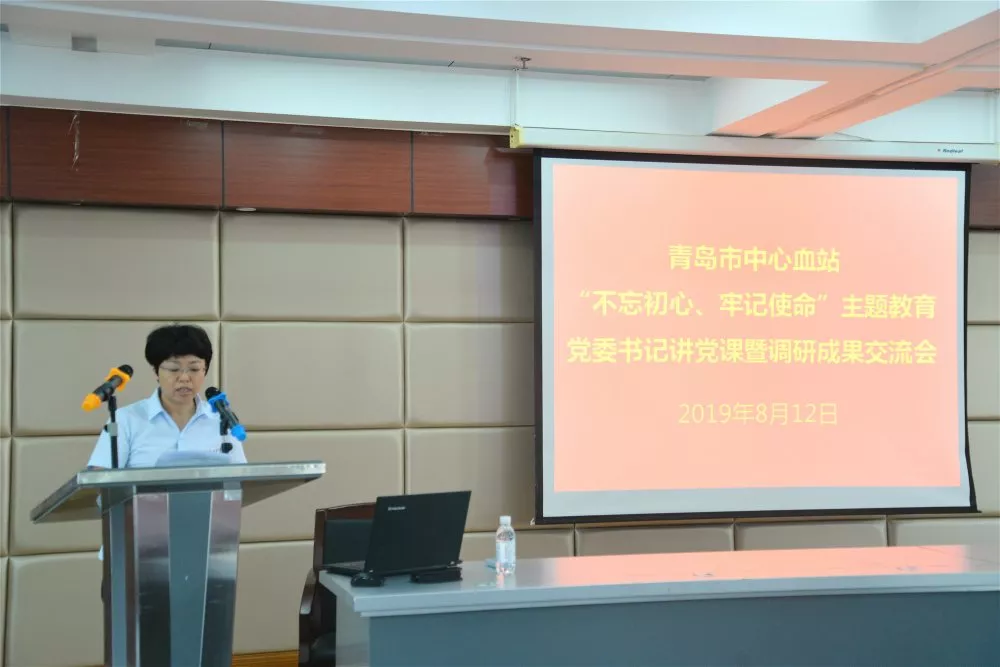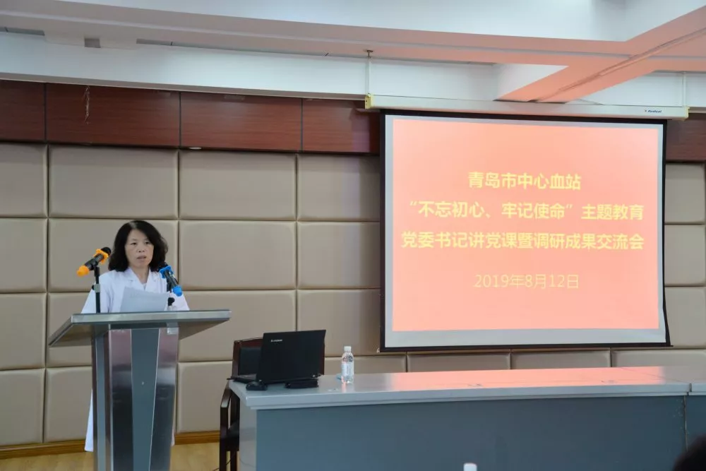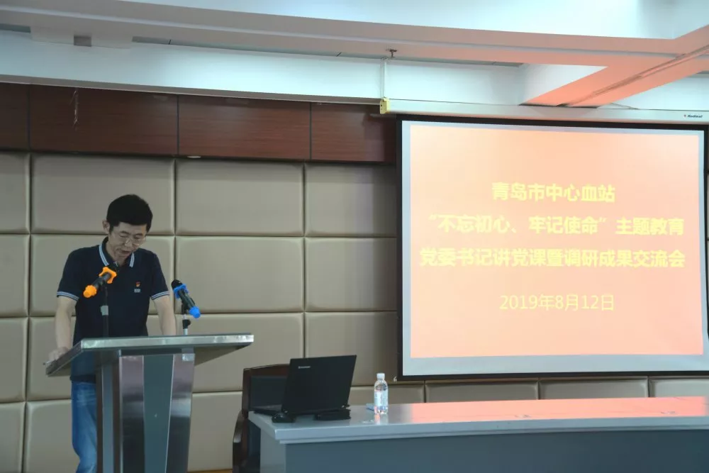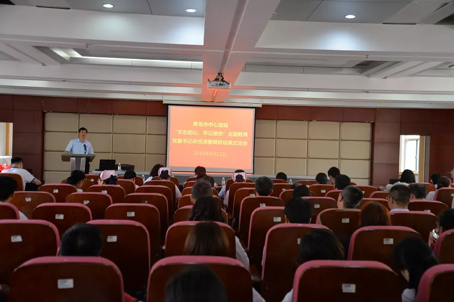 为扎实推进“不忘初心、牢记使命”主题教育,根据市卫健委主题教育领导小组部署要求,8月12日下午,市中心血站在五楼大会议室举办“不忘初心、牢记使命”主题教育调研成果交流会暨专题党课,站领导班子成员汇报调研成果,党委书记闫家安同志为党员领导干部讲授专题党课,全站100余名党员出席本次会议。