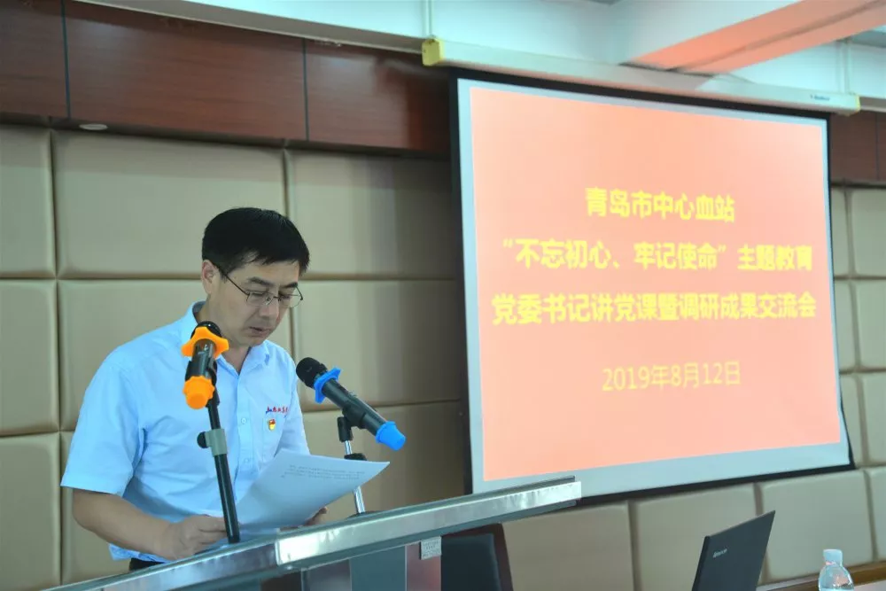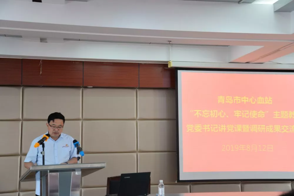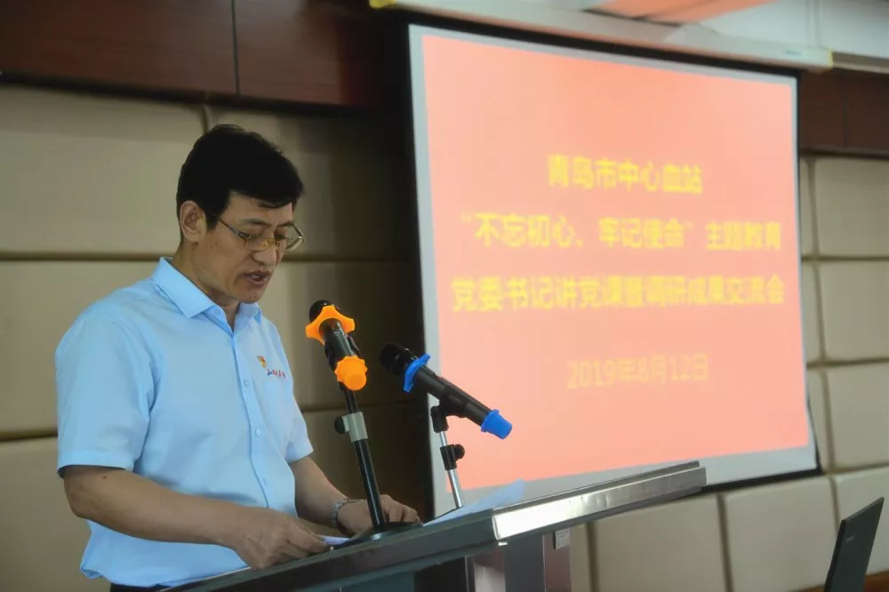 调研成果交流会后,闫家安同志为全体党员干部讲授题为《不忘初心 牢记使命 做新时代合格党员》的党课。本次党课以“不忘初心 牢记使命”主题教育的发展脉络为切入点,重点从什么是共产党人的初心和使命,为什么要不忘初心、牢记使命,作为一名党员我们应该怎么做三个方面展开论述。明确指出全体党员干部应坚定理想,做牢记信念和宗旨的表率;认真钻研,做刻苦学习的表率;脚踏实地,做勤奋工作的表率;廉洁自律,做拒腐防变的表率。全体党员干部要以“不忘初心、牢记使命”主题教育为契机,按照“守初心、担使命,找差距、抓落实”的总要求,工作中立足岗位实际,亮出身份、当好表率,以实际行动叫响“工作落实看我的、解决困难跟我来,责任担当看我的、开拓创新跟我来,模范带头看我的、团结和谐跟我来”的口号,要以更加饱满的激情、昂扬的精神、负责的态度、扎实的工作,推进青岛市无偿献血事业高质量发展,助力建设开放、现代、活力、时尚的国际大都市。
