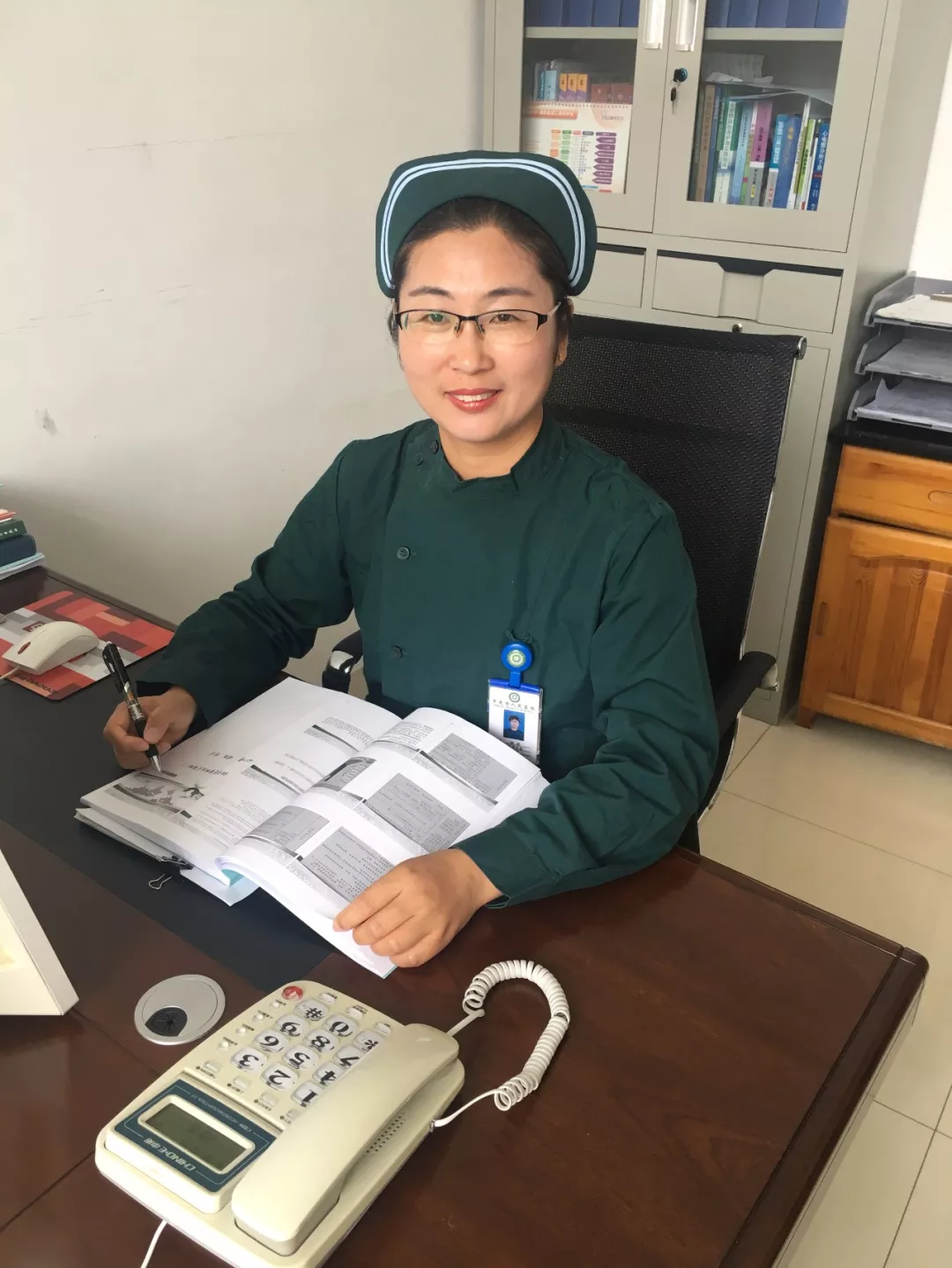2013年她走上了管理岗位,新的岗位赋予她新的挑战,新的责任,她关心体贴护士的生活,把姐妹们当成自己的亲姐妹,只要有困难找到她 ,她总会像超人一样为你解决难题,从来没有一句怨言。让每位护士在群体中有归属感、亲切感,维持良好的情绪状态,使急诊科保持一种积极向上的良好风气。2016-2017年科室进入生育高峰期,全科47名护士生育20多个孩子,在喜悦的同时也给科室工作带来了前所未有的压力,她没有退缩,哪个病区人手不够,她就把自己留到哪个病区,一天十几小时的工作已成为家产便饭,她以自己吃苦耐劳的精神带着全科姐妹们顺利完成了工作,并无一例差错事故。