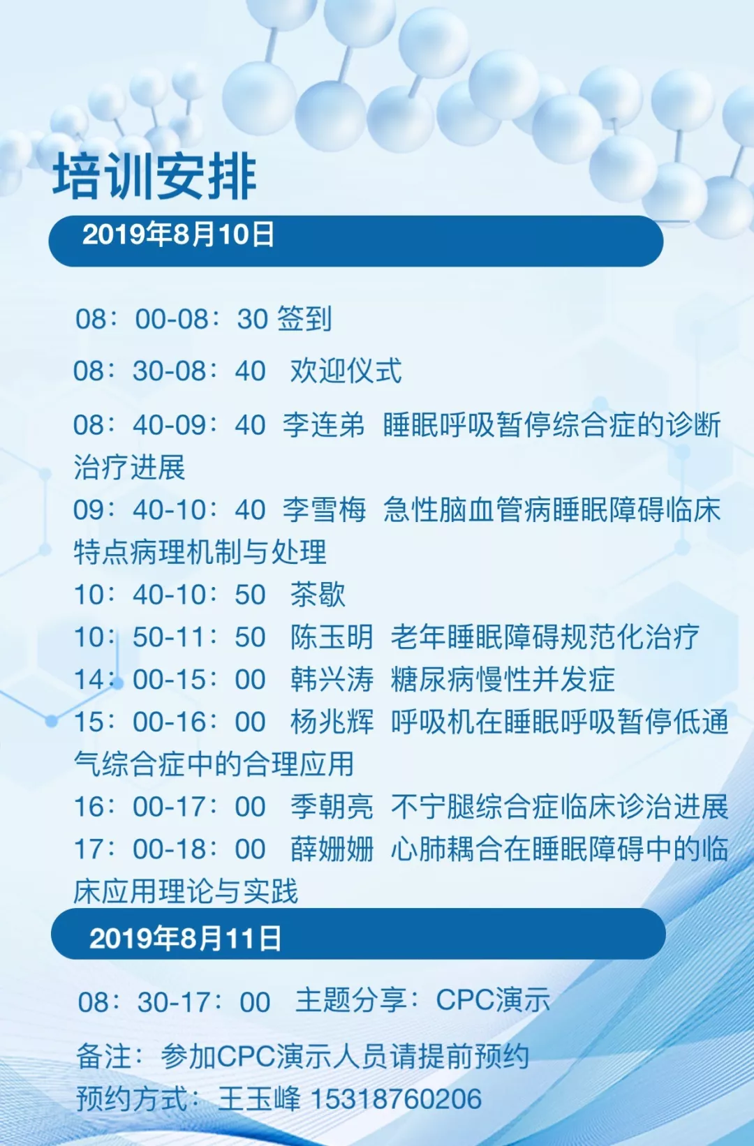 培训将围绕睡眠呼吸暂停综合征的诊治进展急性脑血管病睡眠障碍临床特点、老年睡眠障碍规范化治疗等话题展开,届时将邀请多学科专家,以及医院领导岀席,通过专题讲解、经验交流、CPC展示等形式,就睡眠医学相关问题展开深入交流与研讨。