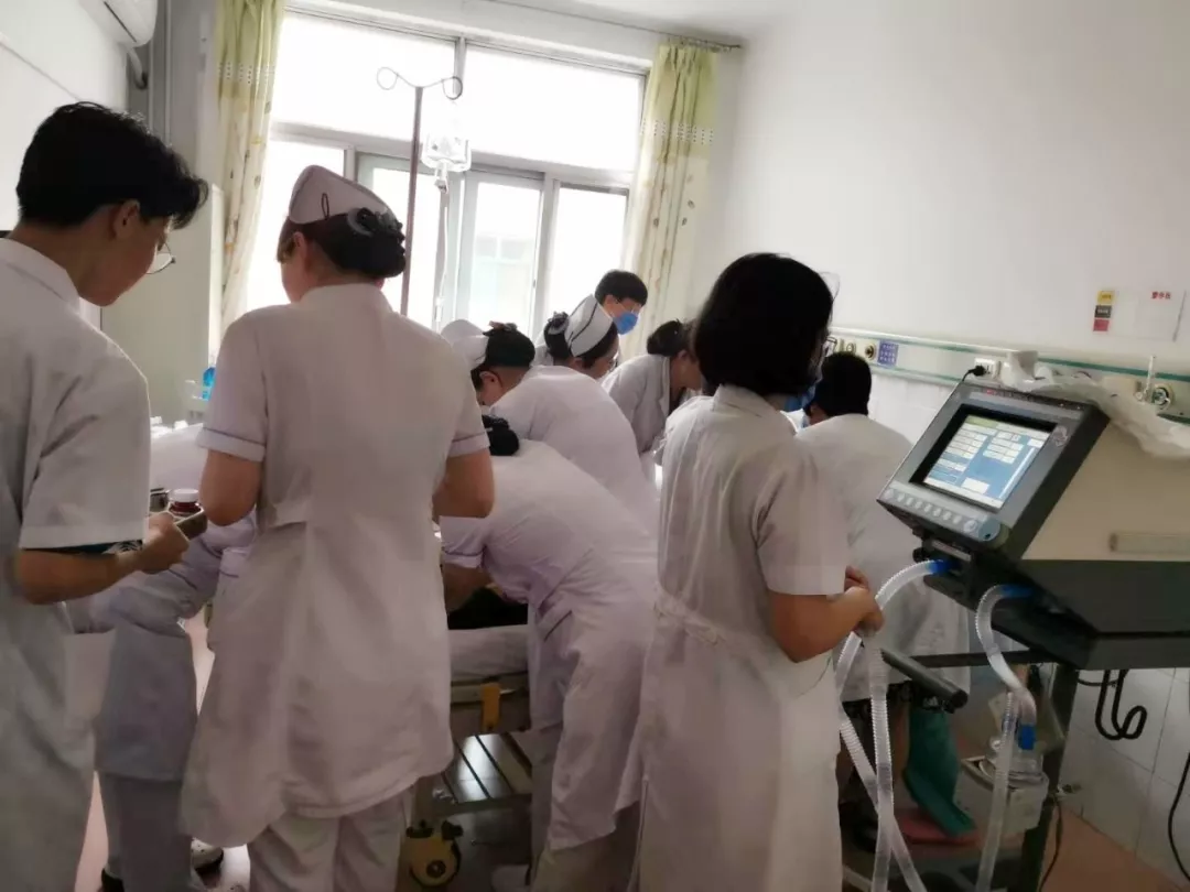 此时,我们心血管科王立珍主任立即请麻醉科李克伟主任、呼吸科张红主任给予气管插管,同时呼吸机辅助呼吸,患者持续烦躁,给予安定镇静后效果不理想,立即请教ICU李金红主任,给予咪达唑仑、芬太尼泵入镇静治疗,并同时继续积极给予其他对症治疗,此时患者血压稳定,心跳正常,我们静待患者意识得恢复,这将预示着我们的抢救是否获得成功。直到此刻,才发现午饭时间早都过去了,大家迅速轮流填饱肚子,依旧坚守在工作岗位上,各司其职。