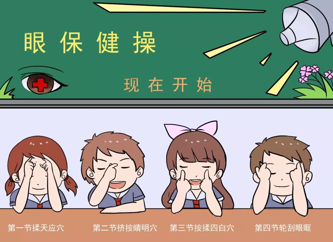 眼保健操可以迫使青少年学生暂时停止学习,是一种可让眼睛放松休息的方法。临床研究,做眼保健操相比不做眼保健操可以减少调节迟滞,改善主观视疲劳感受,从而有助于延缓近视。另外,做眼保健操时要注意孩子的手卫生。