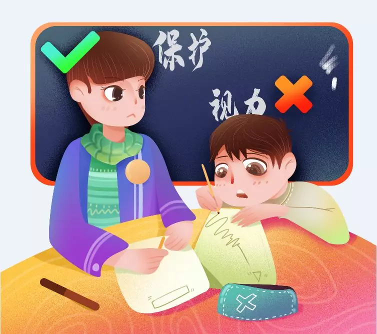 写字时歪头、握笔时指尖距笔尖近(<2cm)的青少年近视患病率较高,建议青少年养成良好的用眼习惯。写字桌要提供良好的照明灯,并结合阅读字体大小进行调整,避免引起眩光和视疲劳。读书写字坚持“三个一”:握笔的指尖离笔尖一寸(3.3厘米)、胸部离桌子一拳(6~7厘米),书本离眼一尺(33厘米);保持读写坐姿端正,不在行走、坐车或躺卧时阅读;读写连续用眼超过40分钟要休息眼睛;不要在晃动的公交车上阅读。家长们注意:0—6岁是孩子视觉发育的关键期,要及时给孩子们做好表率。