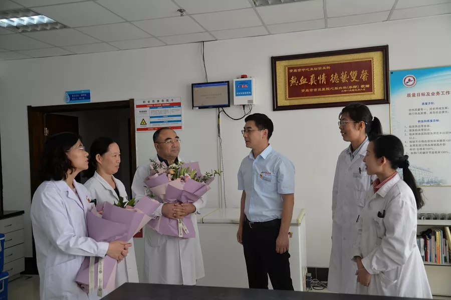 在青岛市中心血站,也有这样一群医师,今天,是他们的节日。青岛市中心血站站长逄淑涛、副站长焦淑娴代表站领导向奋战在各科室岗位的医师们送去了节日的慰问和祝福。