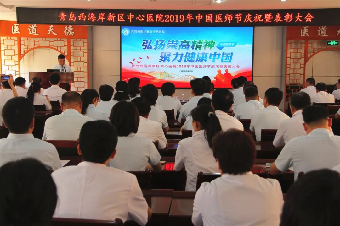 为弘扬“仁心医术、关爱生命”医院核心价值观,增进医患沟通,提高医疗质量与安全,进一步推动全社会形成尊医重卫的良好氛围,8月19日下午,青岛西海岸新区中心医院在行政楼四楼会议室隆重举行2019年“中国医师节”庆祝暨表彰大会。大会由李国华副院长主持,区卫健局领导出席大会,医院党政领导班子、中层干部和骨干医师、健共体成员单位代表等共120余人参加。
