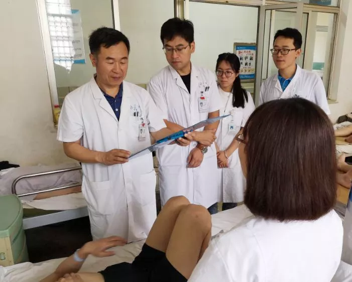 科主任带领查房时与患者进行沟通,