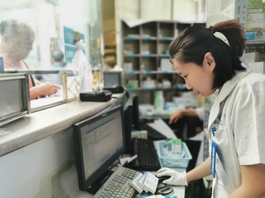 发药时核对药物专注的眼神中,