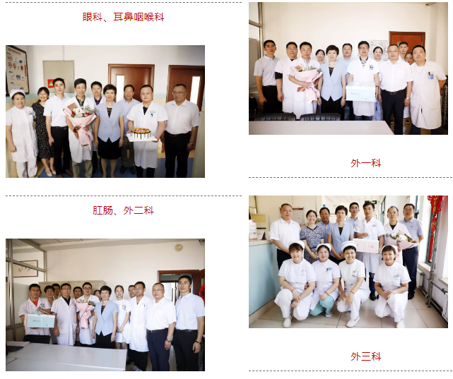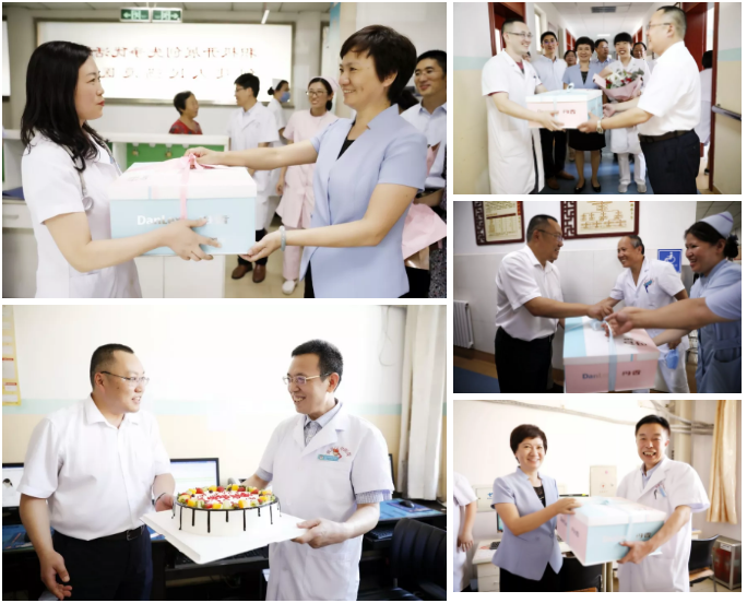 医院领导班子深入临床科室亲切慰问了临床一线医生,为他们送来了蛋糕,并向他们致以节日的问候。每到一处,医院领导都关爱的询问医生工作和生活情况,感谢他们用自己的行动实践着医者誓言,并鼓励他们在工作岗位上取得更大的成绩。