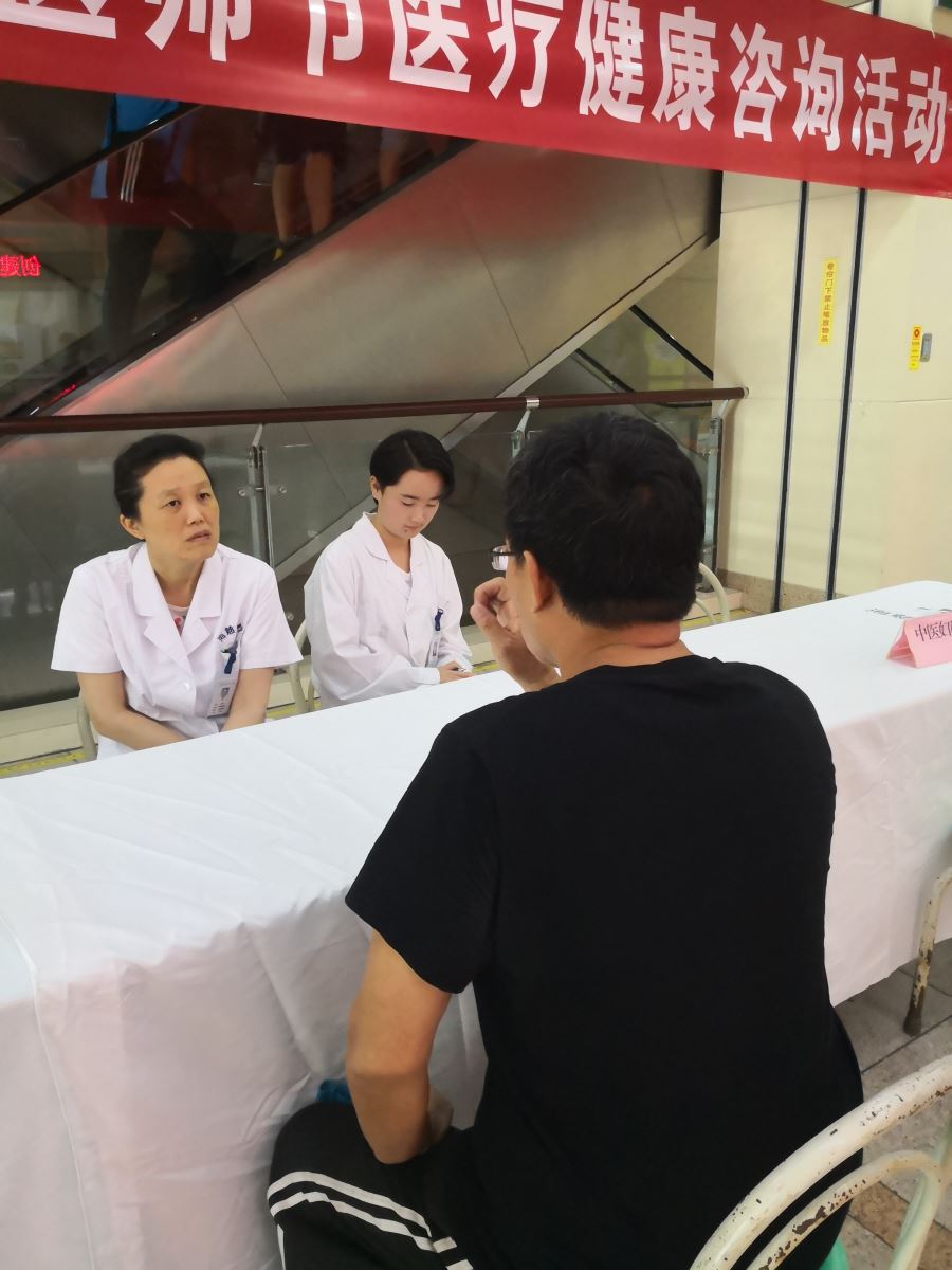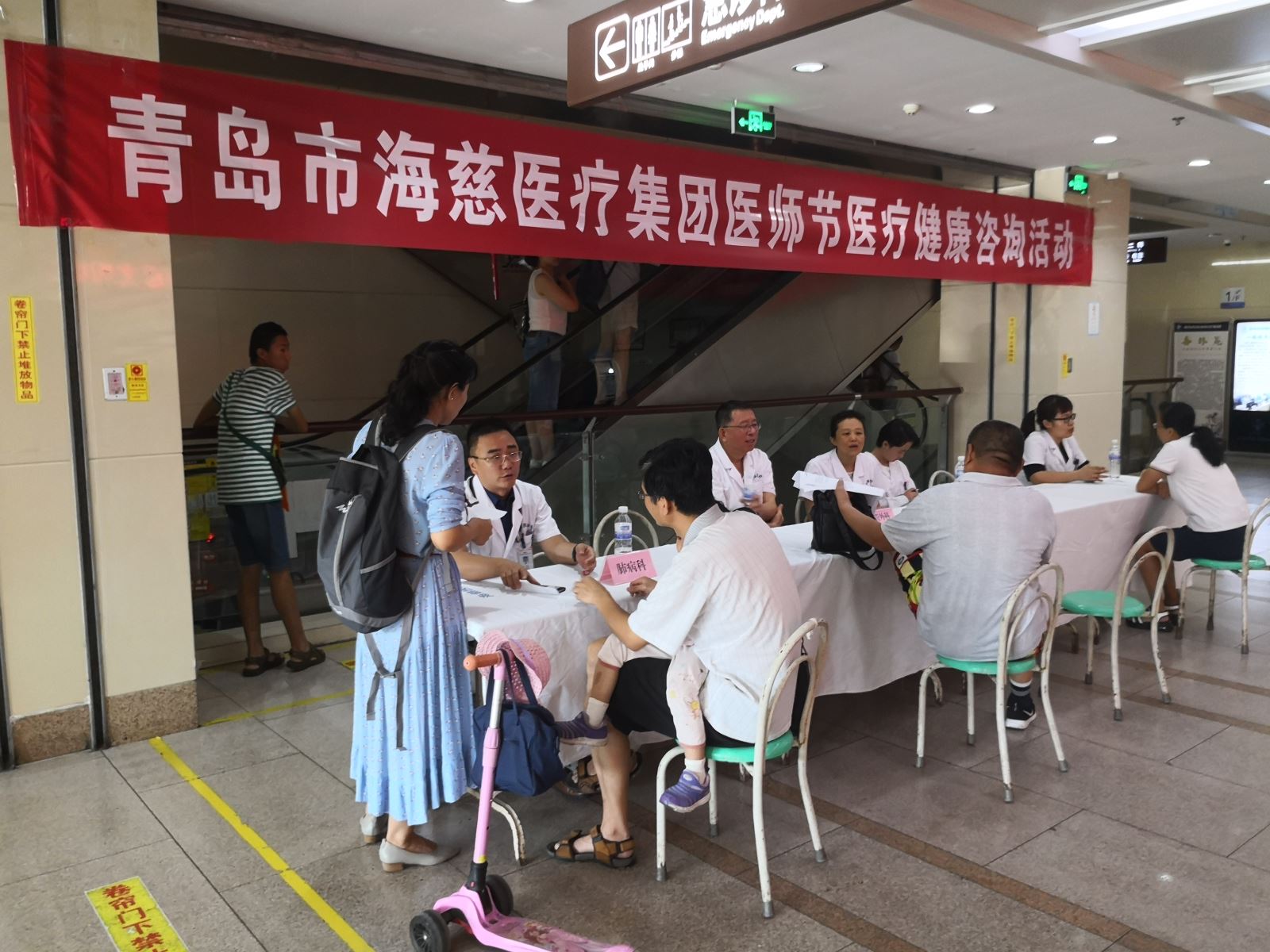 2019年8月19日是第二个“中国医师节”,主题是“弘扬崇高精神,聚力健康中国”,青岛市海慈医疗集团于2019年8月17日上午在A座国医堂一楼大厅举办了“医师节医疗健康咨询活动”,肺病科胡海波医师、针推科金明卜医师、血管外科苗进医师、中医妇科高希焕医师县城为岛城百姓提供了免费的医疗健康咨询,前来进行免费咨询的居民达120余人次。