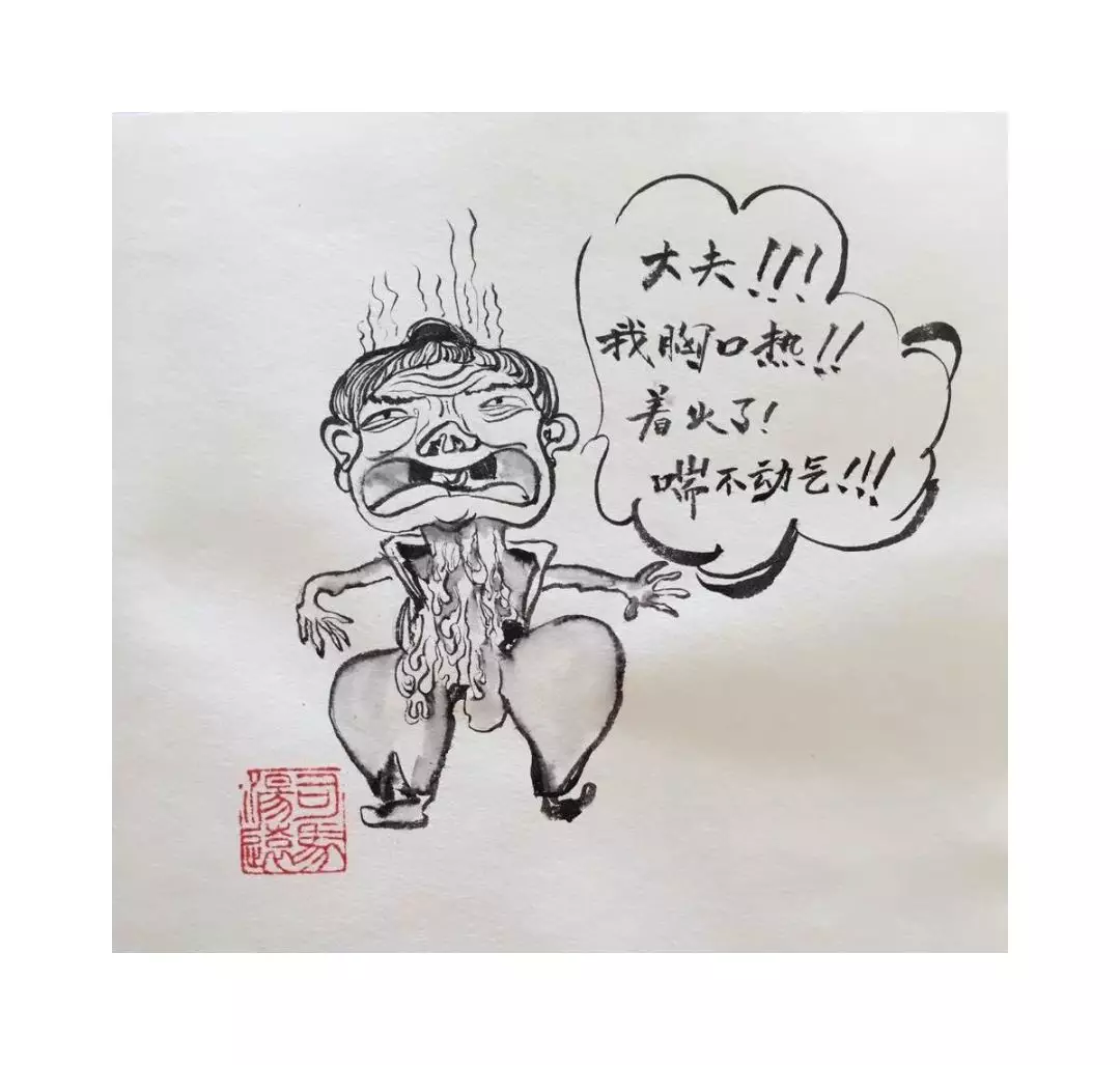 老妪呻吟不断,主诉胸闷,燥热,心中像着火,鼻干。手触胸口皮温较其他部位热,舌诊鲜红无苔,镜面舌。脉诊内热无比,洪大有力。