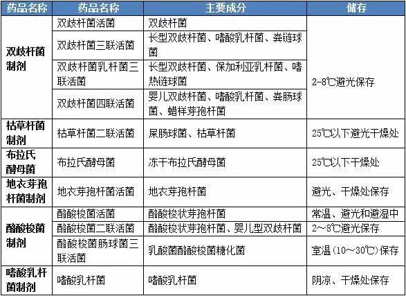 答:不同类型的活菌适宜存活的温度不同,说明书中都有明确的要求。不同药物的储存条件药师已经帮您整理好了,请查收下表(点击可放大查看)。