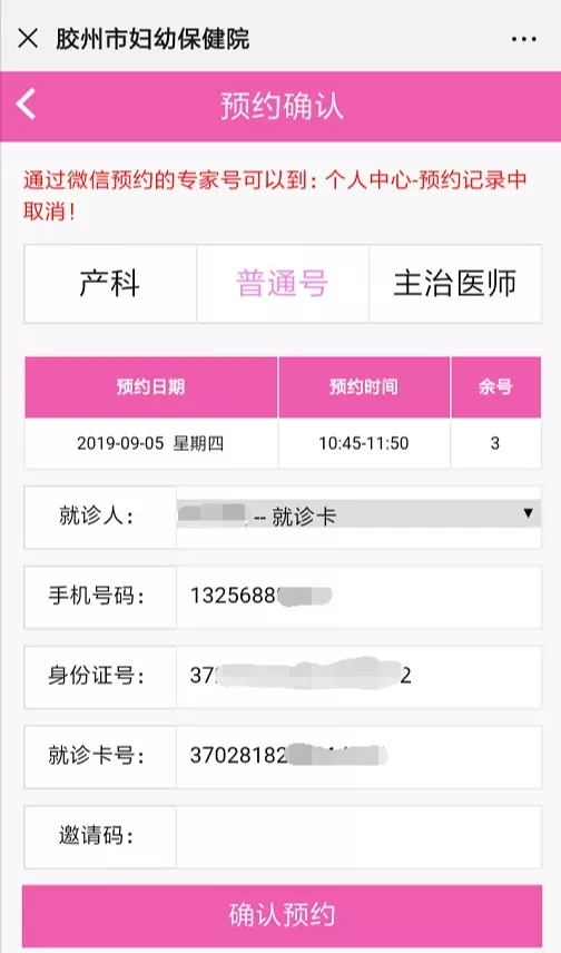 预约信息确认无误后点击下方“确认预约”