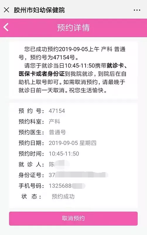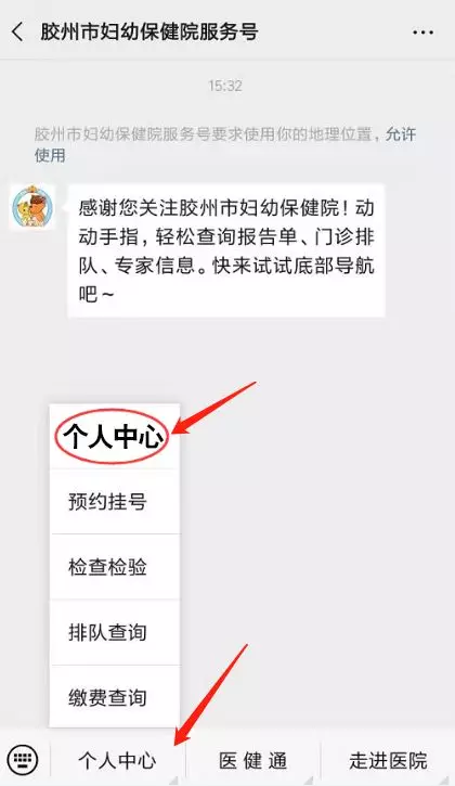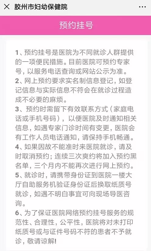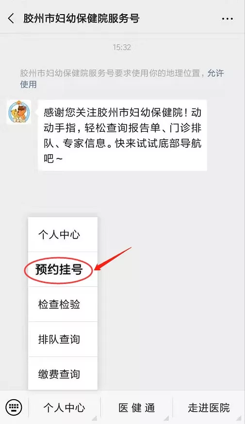 扫码关注“胶州市妇幼保健院服务号”