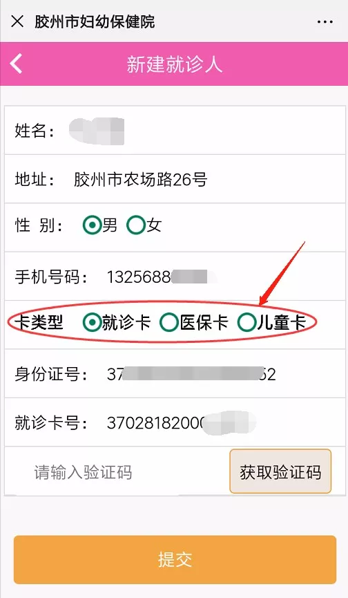 2.根据持有的卡类型进行选择,(儿童卡:身份证为办卡时填写的监护人身份证号码)。