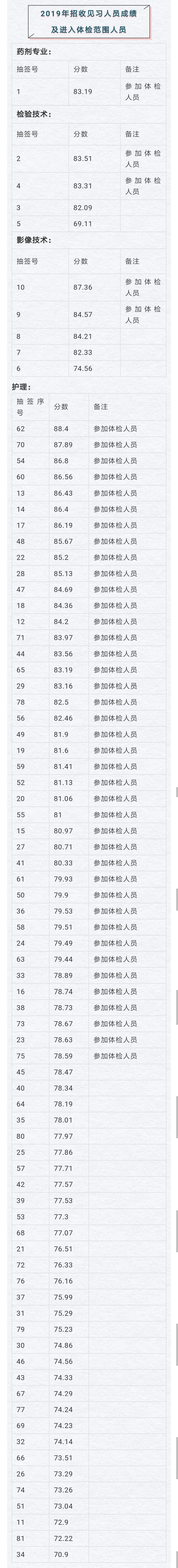 现将2019年招收见习人员成绩予以公布,并将有关体检事项通知如下: