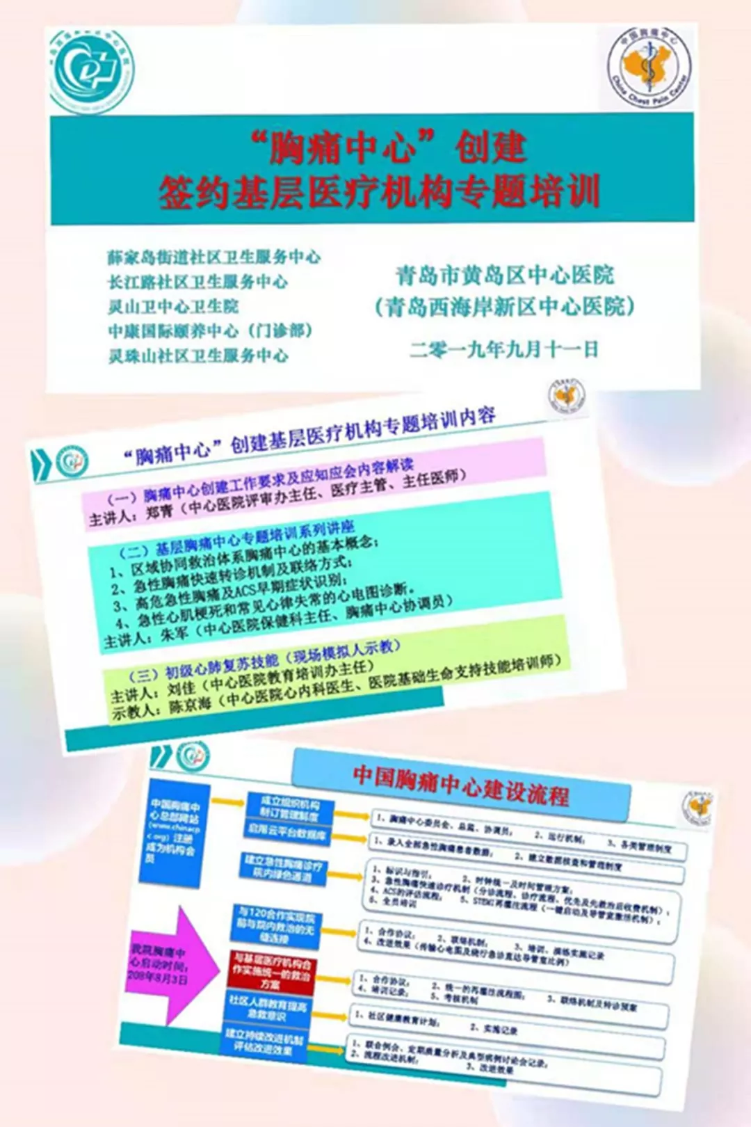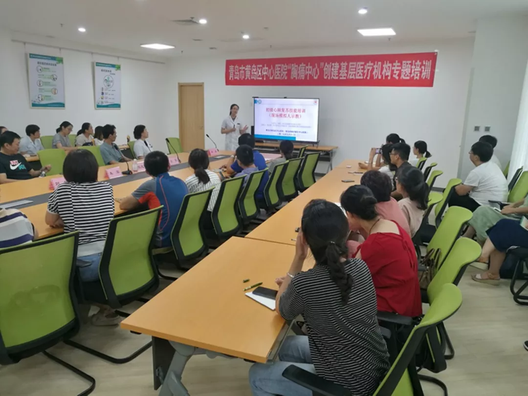 为提高基层医疗机构及健共体成员单位对胸痛患者的急救水平,扎实推进青岛西海岸新区中心医院“胸痛中心”建设,依据“胸痛中心”创建计划要求,9月11日下午,青岛西海岸新区中心医院评审办、健共体综合办、教育培训办、心内科专家联合组织到薛家岛街道衡山路社区卫生健康服务站(智慧全科中心),对与医院签订“胸痛中心”区域协同救治网络建设合作协议的5家基层医疗机构进行了专题培训。五家基层医疗机构包括:健共体成员单位薛家岛街道社区卫生服务中心、长江路街道社区卫生服务中心、灵山卫中心卫生院,及两家协议单位:中康国际颐养中心、灵珠山街道社区卫生服务中心。