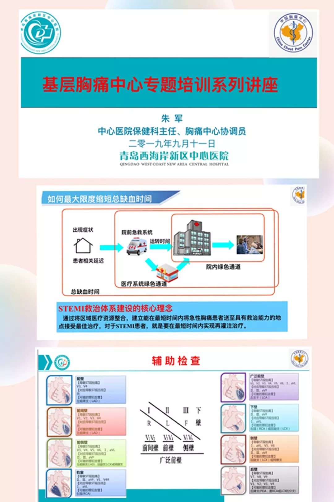 医院保健科主任、胸痛中心协调员朱军主任作了“基层胸痛中心专题培训系列讲座”,针对区域协同救治体系胸痛中心的基本概念、急性胸痛快速转诊机制及联络方式、高危急性胸痛及ACS早期症状识别以及急性心肌梗死和常见心律失常的心电图诊断等专业知识进行了解析;并对基层医务人员常见的专业问题进行了答疑。