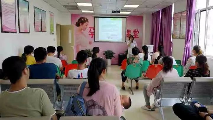 在孕妇学校,孕妈妈举行产前筛查公开课,