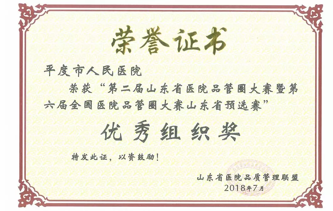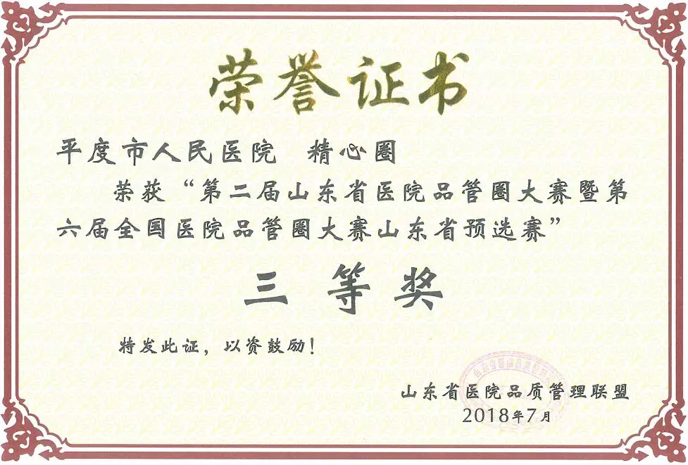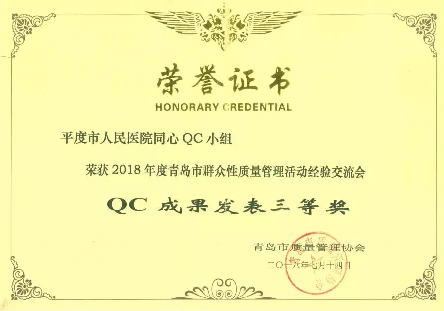 推行的品管圈有多个主题获得国家级、省级、市级奖项,既是对运用管理工具解决实际问题的肯定,更坚定了我们持续改进医院品质的决心。目前我院第二期品管圈活动已于6月正式结题,改善了医护药技实际问题24项,全面医疗质量得以改进。