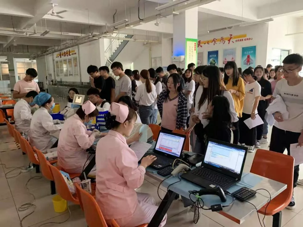 下午两时许港口学院和物流学院两百余名爱心学子在食堂集合,有序来到献血现场。同学们按照顺序和要求进行填表、查体、检验、电脑信息录入、献血、领取献血证和纪念品,大家情绪高昂,精神饱满。献血结束后,同学们纷纷在“献青春热血 为祖国献礼”展板上签上自己的名字,用自己的热血和爱心为祖国献礼,大家都希望通过自己一点小小的付出,为需要输血治疗的病患们提供帮助,为社会奉献一份爱心。