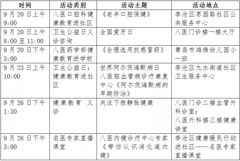 【预告】青岛市第八人民医院“服务百姓健康行动”大型义诊活动周明天启动 期待您的参与
