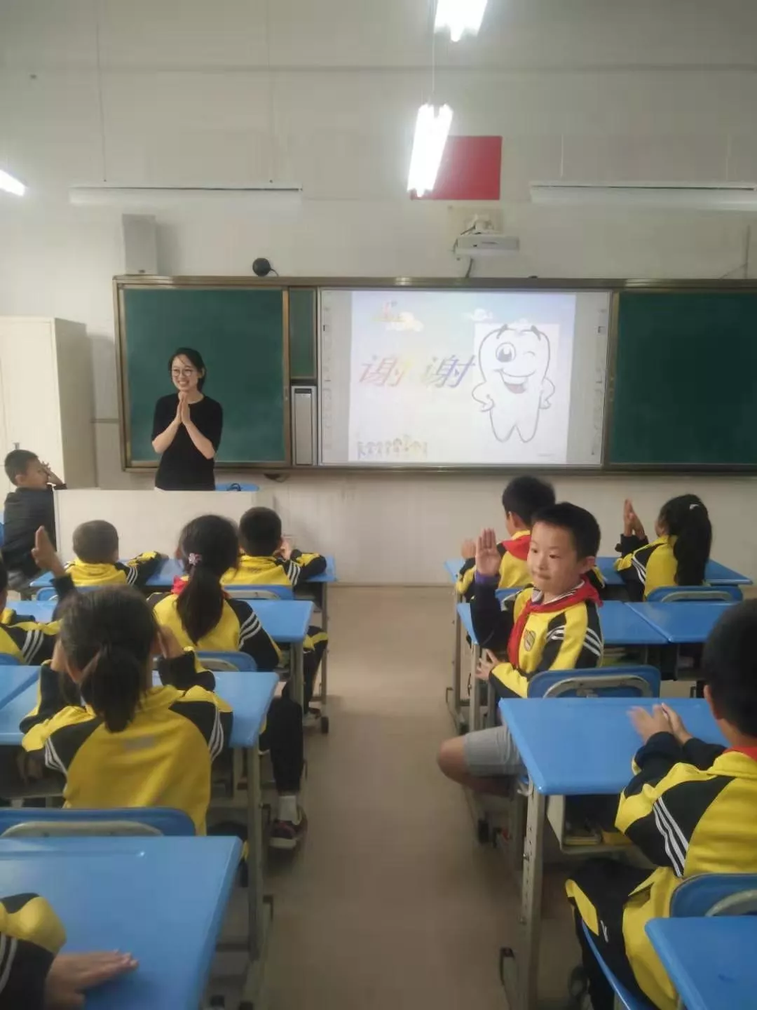 刘亚芳主治医师来到青岛西海岸新区凤凰岛小学三年级四班进行青少年口腔卫生宣教。