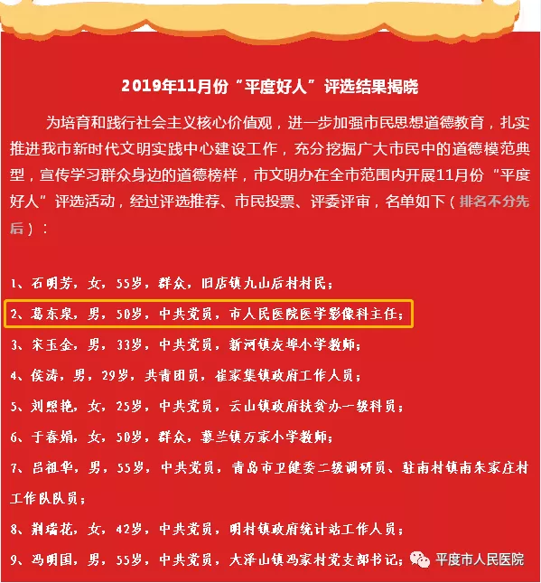 “平度好人”评选结果,