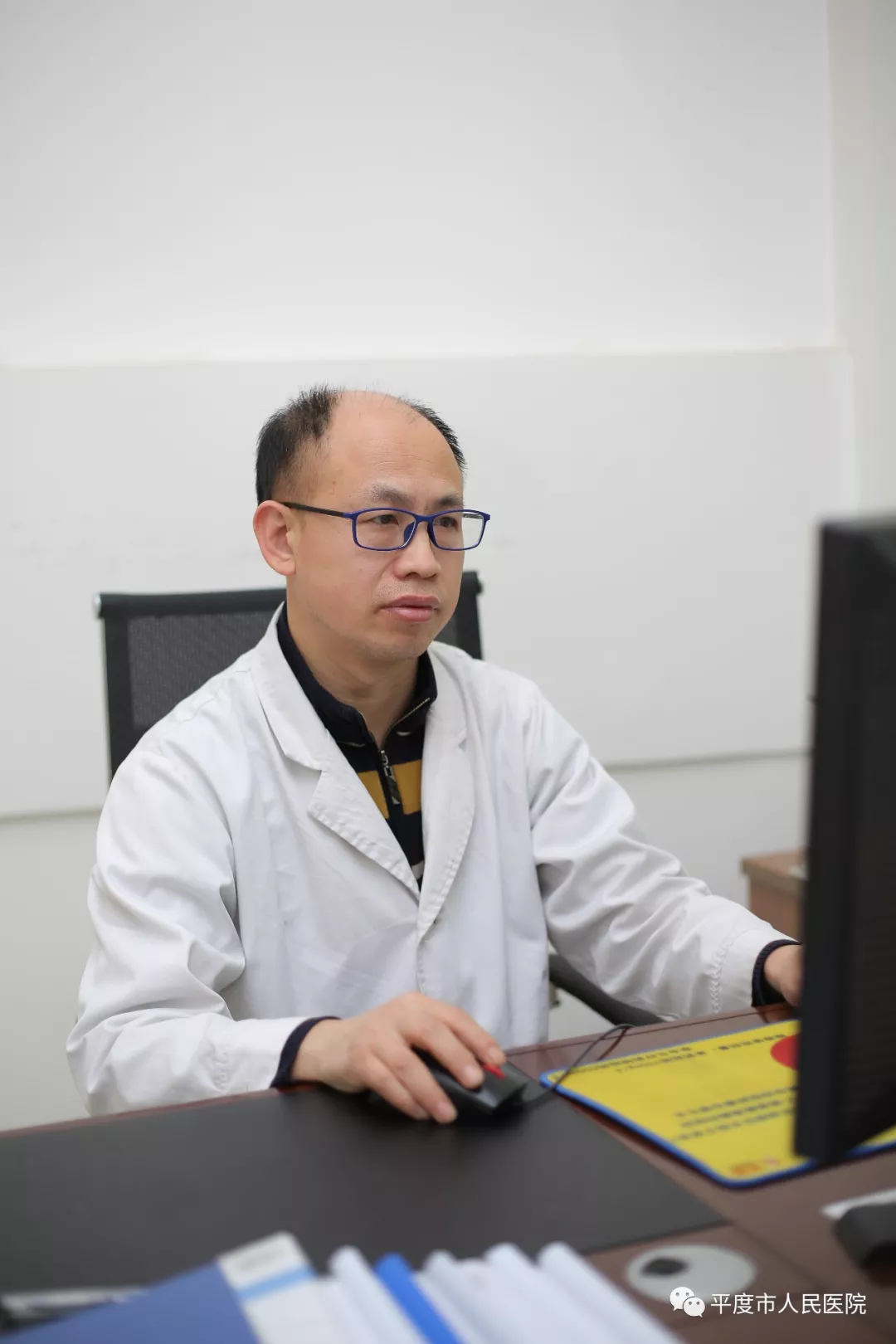 他时刻以党员的标准严格要求自己,牢记党的宗旨,始终坚持以病人为中心的服务理念,工作当中,时时处处身先士卒。2019年10月28号上午8:33分,正在准备起身进行每天科室各个窗口例行巡查的他,有人告知:核磁门口有人晕倒了,还没听完他已经闪速奔出至核磁检查走廊,发现患者家属抱着的一老人,颜面青紫,呼吸抑制,意识消失,家属呼叫不应,经验丰富的他立即让家属将老人平放于担架车上,头侧歪,保持呼吸道通畅,并和赶来的科室护士、门诊导医一起将老人送至急诊抢救室,经急诊室处理后老人意识恢复,病情好转。后与老人家属沟通,了解到该患者肺癌晚期,家属搬动过程中发生呼吸道阻塞。在看到老人病情稳定,老人家属脸上露出放松、欢喜的笑容后,他才和同事离开急诊室,继续他每日4次的例行科室巡查。
