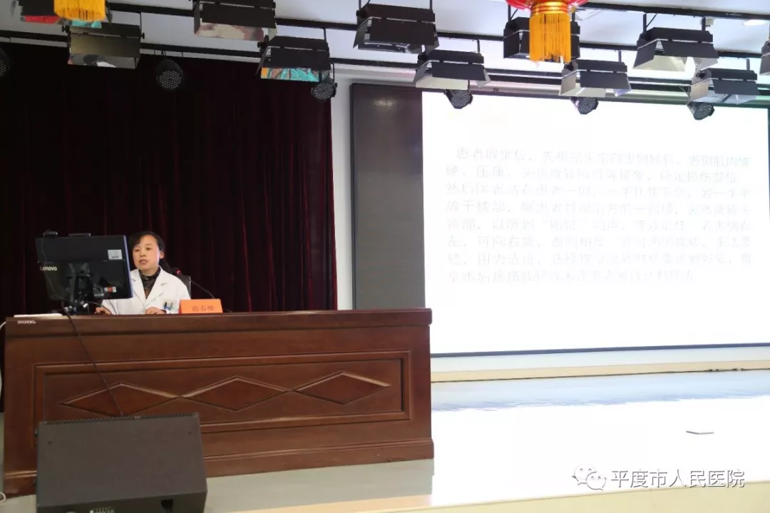 康复医学科薛春焕主治医师为大家讲解了颈椎病及落枕的治疗方法,从手法及针灸两方面演示了治疗方法。现场乡医朋友们认真学习、做好笔记,纷纷表示乡村医生培训课程安排对日常为百姓健康服务时针对性极强。
