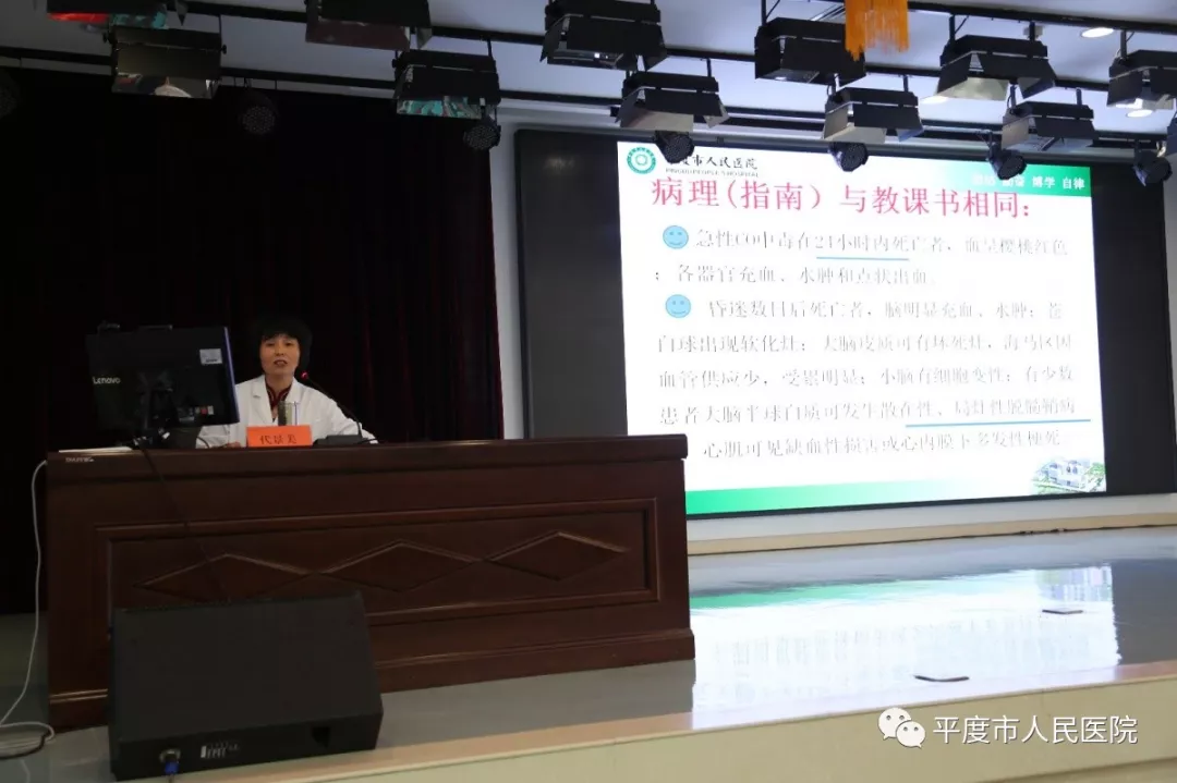 “每到冬季,一氧化碳中毒事故时有发生。尤其是雾霾天气,由于大气压较低,气象扩散条件差,不利于污染物扩散,更加剧了一氧化碳中毒事故的发生。”培训会上,我院高压氧科主任代景美就雾霾天与一氧化碳中毒发生的厉害关系向在座的乡医朋友们解释。“人体的血液中有一种运输氧气的物质叫血红蛋白,当环境中一氧化碳浓度过高时,血红蛋白更喜欢与一氧化碳结合而不与氧气结合,就导致了人体缺氧……”就这样原理加案例,代主任从一氧化碳出现的原因、一氧化碳中毒的表现、危害、院前急救、院内救治及严重并发症等做了详细讲解。