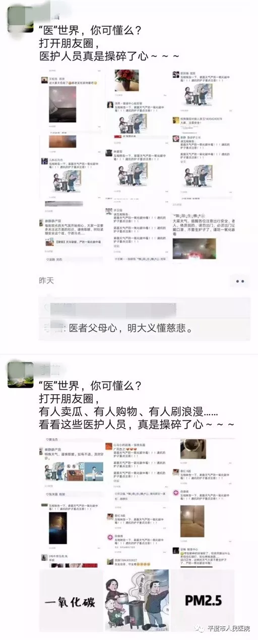 医务工作者们就像约定好了一样,利用自己的朋友圈及时告诫大家:雾霾天一定要注意预防一氧化碳中毒!
