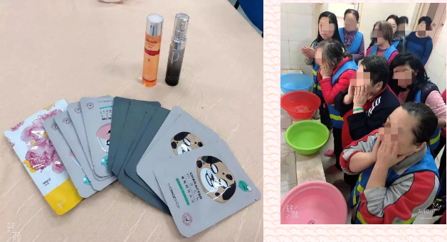清洁完面部,大家坐在一起,耐心的听孙护士讲敷面膜的步骤