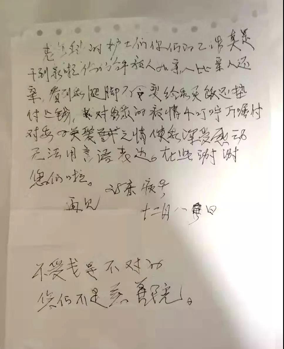 12月8日,老年医学科的护理人员收到了一封特殊的感谢信,虽然没有华丽的语言,没有俊秀的字体,没有纹饰的纸张,却让全体护士感动不已。