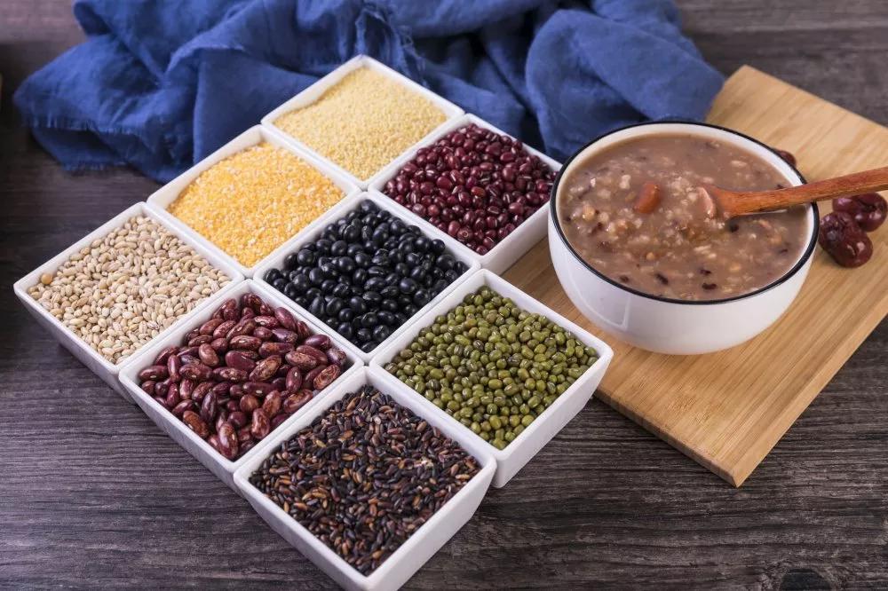 豆类:作为腊八粥里一种重要的材料,黄豆富含蛋白质、脂肪、碳水化合物、粗纤维、钙、磷、铁、胡萝卜素、硫胺素、核黄素、尼克酸等,能降低血中胆固醇、预防心血管病、抑制多种恶性肿瘤、预防骨质疏松。中医认为,豆品具有健脾燥湿、利水消肿之功,对于脾虚腹泻以及水肿有一定的辅助治疗作用。此外,绿豆则对高血压有辅助治疗的功效。