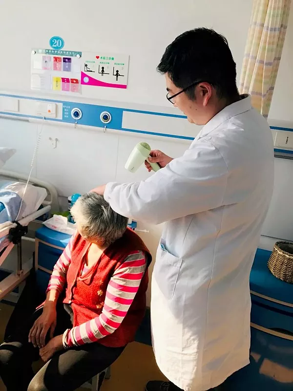 潘大夫的手,就是如此神奇,能为患者治病,也能为老人吹头发。