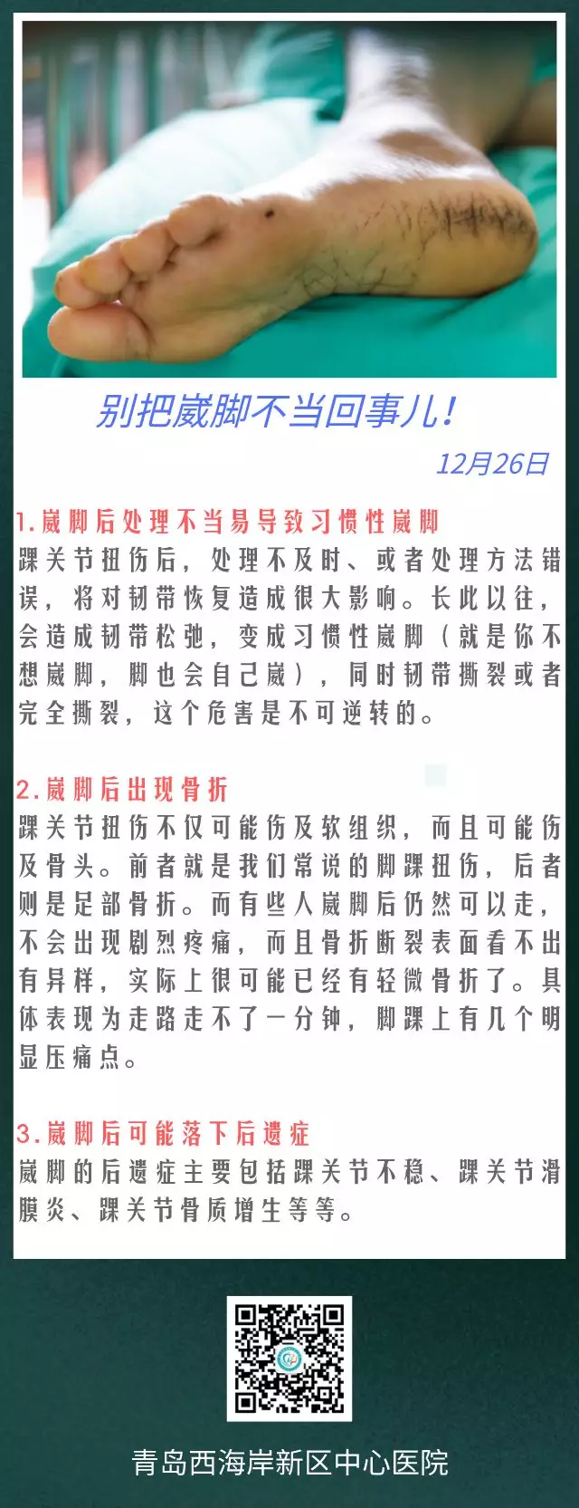 西海岸新区中心医院:日签 | 崴脚了,千万别不当回事儿!